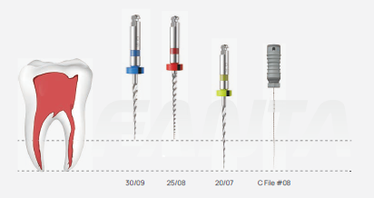 2.Use ?25/08 to remove the obturation materials from the middle third without pressure;