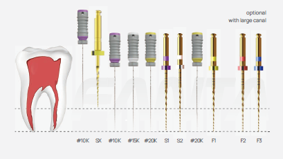 12. Use F2 to working length optional ( in large canal);